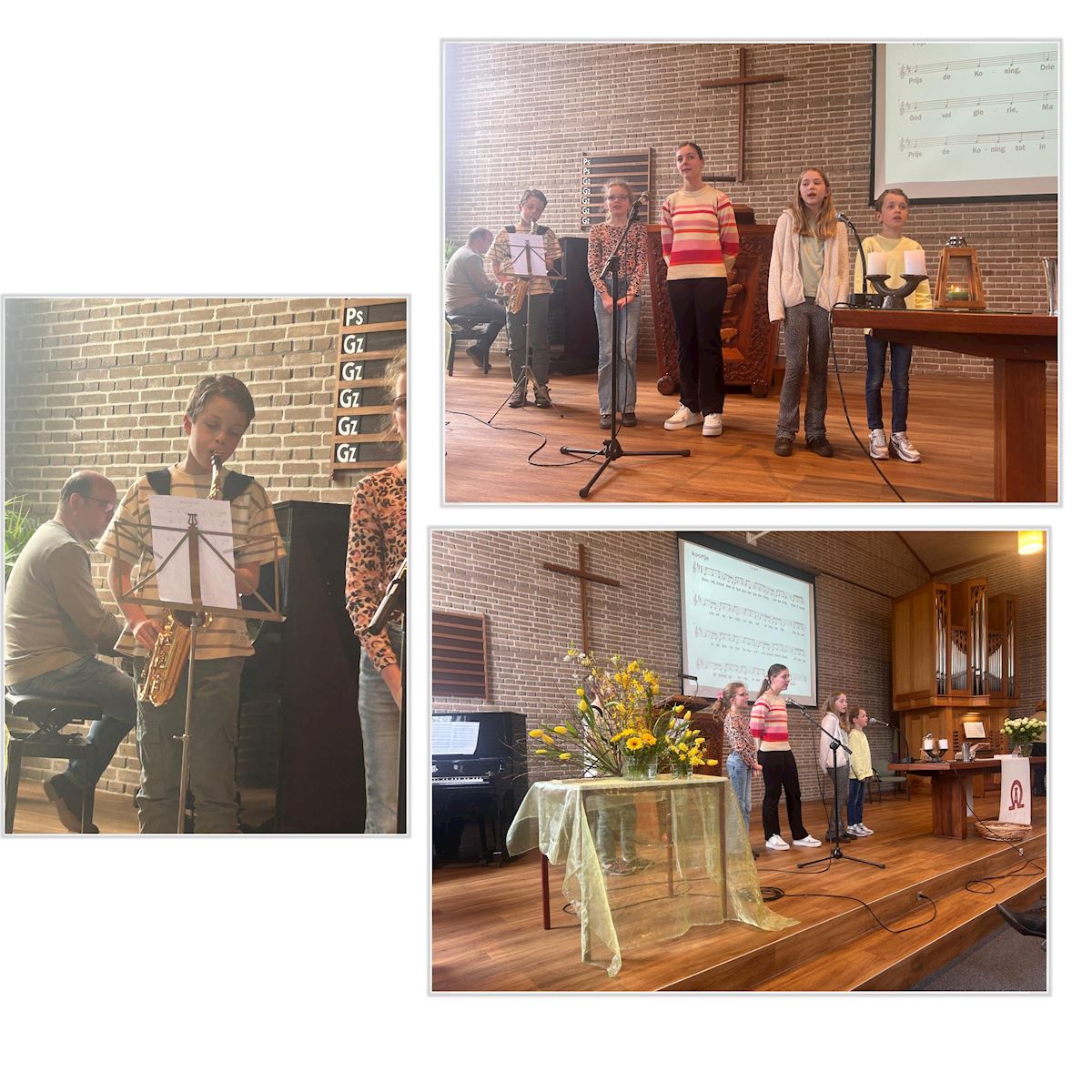 Een bijzonder hoogtepunt was het optreden van de oudste kinderen van de kindernevendienst. Zij hadden een lied ingestudeerd en zongen dit vol overtuiging en met stralende gezichten. Met pianobegeleiding en saxofonist erbij werd het een mooi moment dat door de hele gemeente werd gewaardeerd.