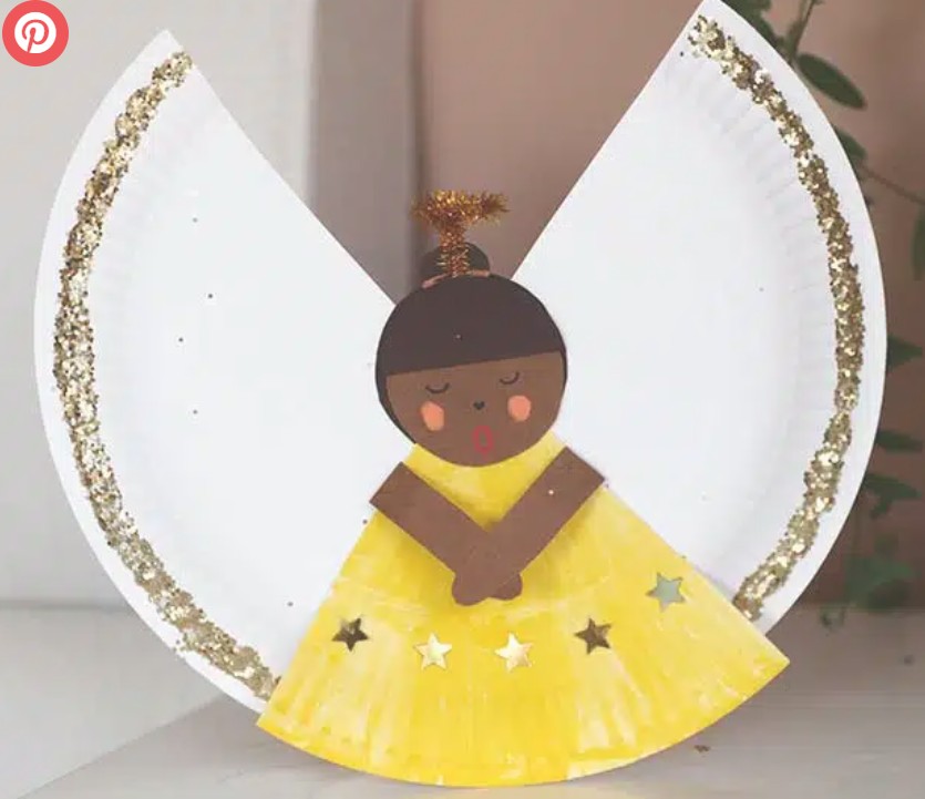 Maar ook met een papieren bordje en gekkleurd papier maak je een hele leuke engel. En je kunt je engel net zo groot maken als je wilt. Natuurlijk kun je in plaats van een papieren bordje ook een mooi gekleurd papier gebruiken, waar je een rondje uitknipt.