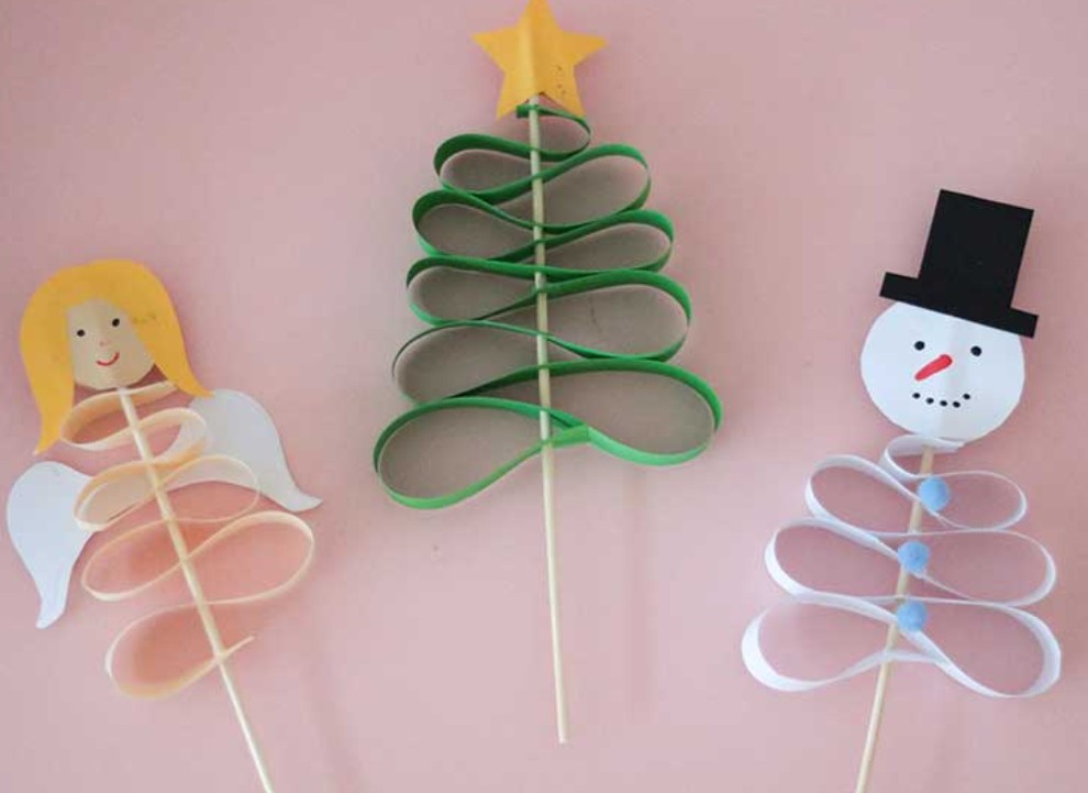 En nog een hele leuke, makkelijke knutsel: een engel, kerstboom of sneeuwpop op een lange saté prikker. Kun je gezellig de tafel mee versieren tijdens ontbijt of kerstdinet. Leg ze op het bord van iedereen of steek ze in het brood. Met een lief kaartje eraan, kun je ze ook aan iemand weggeven.